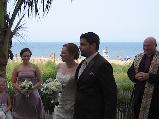 Next is the groom and his best man. Oh yeah, for those who forgot, we were going down to Ocean City for an old friend's wedding. The tall dude on the right is that friend. Tom and I went to high school together, and we've been friends for a long, long time. The best man is also an old school friend (like junior high!), the stud-man (his last name is Studley), Kevin. And yes, your eyes are not decieving you. They're wearing brown suits, not black.