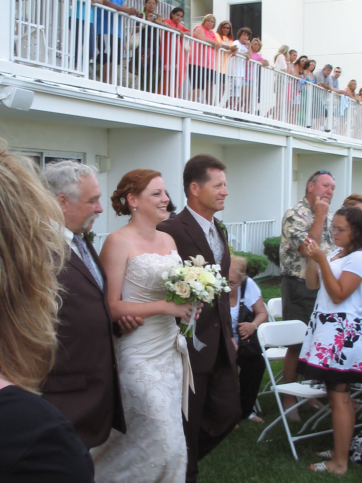 Next is the bride walking down the aisle with her dad and stepdad. I've only known Stacey for a couple of years or so, but I dig her. She and Tom work. They compliment each other very well.